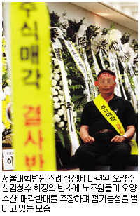 이런 와중에 지난 5월23일 김 회장이 다시 쓰러져 중환자실로 옮긴 지 1주일만인 6월2일 별세했다. 그런데 장남인 김 부회장은 입원 사실조차 모르고 있었다. 어머니를 비롯한 여동생들이 그에게 알리지 않았고 임종도 못 지켰다는 게 김 부회장 측의 말이다. 반면 평소 문병 한번 오지 않았던 장남이 부친이 돌아가시자 경영권 때문에 장례식장을 점거하는 패륜적 행동을 저질렀다고 유족 측은 반박한다. 거듭된 법정소송전 끝에 천륜마저 끊고 지냈던 게 오양수산 비극의 결말이다.