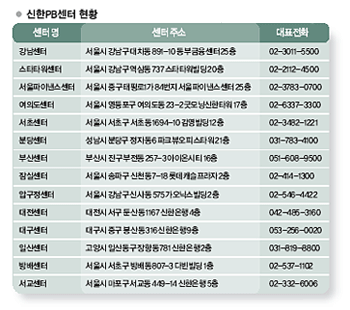 한편 신한PB는 전국적으로 14곳의 센터를 갖추고 있다. 10억원 이상 자산가만을 위한 전문 센터로는 국내 최고를 자랑하지만 아직 부족하다는 것. 박 부행장은 “센터와 원거리에 있는 고객에 대한 접근 편의성과 타 금융사의 적극적인 PB채널 확대 전략에 대응하고 곧 시행될 자산관리통합법에 대비할 필요가 있다”며 “2008년에는 지역 밀착형 센터를 신규 개설해 찾아가는 고객 서비스를 보다 강화할 계획”이라고 밝혔다.