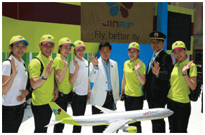 오는 7월17일 김포-제주 노선의 첫 운항을 앞둔 진 에어는 지난 6월15일 서울의 중심부인 명동 외환은행 본점 앞 광장에서 출범식을 갖고 나비 모양의 기업 이미지(CI), 파격적인 컬러의 첨단 항공기 그리고 진바지를 입은 객실승무원을 일반에게 공개했다.