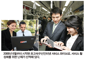 2006년 6월 서울 및 경기도 분당 등 수도권에서 세계 최초로 시작된 와이브로(WiBro) 서비스도 서비스 상용화가 시작도 되기 전 시장 위축이 우려되고 있다. 2008년 상반기에 20만 가입자를 달성하는 등 큰 폭은 아니지만 그동안 꾸준한 증가를 보였던 가입자 수는 2008년 9월 현재 오히려 17만 수준으로 감소했다. 와이브로는 이동하면서도 초고속인터넷 서비스를 즐길 수 있는 서비스다. KT는 지난해까지 이 사업에 6700억원을 투자했고, 올해도 1200억원을 쏟아 부었다. 하지만 여전히 대규모 망 투자비용, 킬러 서비스의 부재, 3세대 이동통신과의 경쟁 등 서비스 조기 활성화를 위해 많은 난제가 산적해 있다.