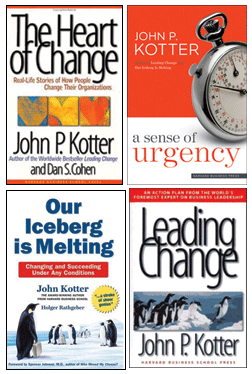 그는 이 책을 기초로 단계별 실제 사례연구를 보완한 <기업이 원하는 변화의 기술(The Heart of Change>을 2002년 출간했으며, 2006년에는 펭귄을 주인공으로 한 <빙산이 녹고 있다고?(Our Iceberg Is Melting)>라는 비즈니스 우화를 펴내기도 했다. 결국 코터 교수의 핵심이론은 변화관리의 8단계 모델을 통해 체계적으로 이해할 수 있을 것이다.