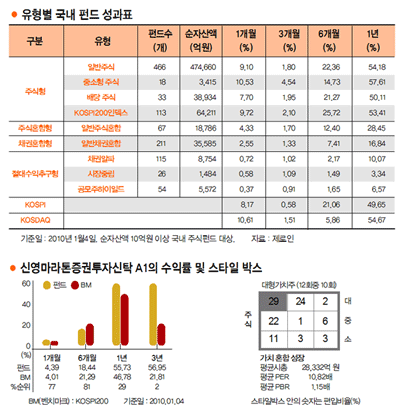 2010년은 불투명한 경기 전망으로 인해 증시가 단기적으로 큰 변동성을 보이면서 크게는 횡보하는 국면이 펼쳐질 것으로 보인다. 이런 국면에서는 상대적으로 저평가된 가치주에 투자하는 가치주 펀드의 매력이 높다. 하지만 주식시장은 워낙 예측이 어렵고, 경기 전망이 불투명할수록 빗나갈 확률도 높다. 무조건적인 스타일 배분 전략 추구보다는 본인의 투자 성향에 맞게 투자하는 것이 무엇보다 중요할 것이다.