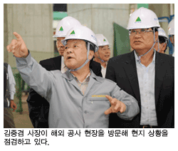 요즘 국내 건설업계에서 가장 바쁜 CEO는 단연 김중겸 현대건설 사장일 것이다. 지난 6~7월 그의 동선만 보더라도 카자흐스탄, 싱가포르, 쿠웨이트 등 한 주가 멀다 하고 외국 출장을 다녀왔다. 신사업 진출 모색, 기공식 참석, 수주 계약 체결 등 출장 업무 내용도 굵직굵직하고 다양하다. 현대건설 측에 따르면 김 사장은 2009년 3월 취임 후 17회에 걸쳐 중동, 아프리카, 동남아시아, 유럽 등 세계 35개국을 누볐다고 한다.