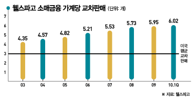 교차판매란 한 명의 고객에게 다양한 상품을 반복적으로 판매하는 것을 말한다. 실제 2009년 웰스파고의 소매금융 부문 가계당 교차판매 실적은 5.95개로, 미국 은행 평균의 약 두 배에 이른다. 이처럼 우수한 교차판매 실적을 기반으로 웰스파고는 49%(2009년 기준)라는 높은 비이자수익 비중을 기록할 수 있었으며, 이를 통해 금융 위기로 상당수 금융회사들이 손실로 고통을 받고 있는 상황에서도 지속적인 수익을 창출하는 쾌거를 이뤄낼 수 있었다.