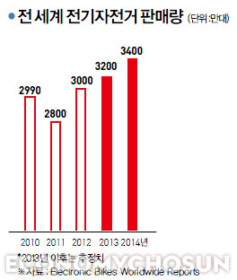 전기자전거가 첫선을 보인 것은 지난 1970년대 중반 일본 전자기업 내쇼날과 산요가 합작으로 시험 삼아 개발한 것에서 출발한다. 그리고 본격적인 양산에 들어간 것은 1993년 일본 야마다가 파스(Pedal Assistance System·페달구동지원) 방식 제품을 개발하면서부터다. 이후 1990년대 말 중국, 유럽으로 흐름이 옮겨가면서 전기자전거는 거스를 수 없는 대체 이동수단이 되고 있다. 현재 전 세계 전기자전거 시장은 지난해 말 기준으로 3000만대, 금액으로 환산하면 약 8조원으로 추산된다.미국의 시장조사업체 바이크리서치는 전 세계 전기자전거 시장이 오는 2018년 13조원대에 이를 것으로 전망했다.
