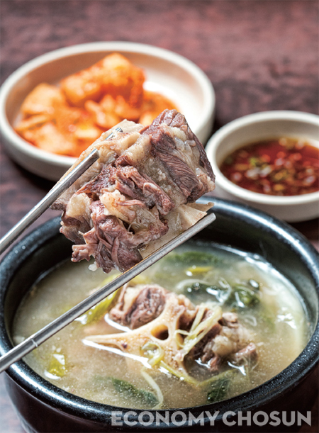 2. 국물을 내기 위해 사용한 소 뼈(뼈다귀)에는 고깃살 뿐만 아니라 콜라겐 덩어리인 물렁뼈가 많다. 애주가를 위한 술안주로 제격이다.
