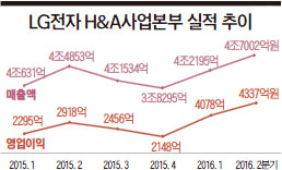 H&A(생활가전) 사업부의 영업이익률은 9.7%, 2분기엔 9.2%를 기록했다. 세계 주요 가전기업 가운데 가장 높은 수치다. 실제 미국 월풀의 영업이익률은 6.5%, 스웨덴 일렉트로룩스는 4.5%였다. 가전 부문에서 이처럼 높은 영업이익률을 기록한 것은 전례를 찾아보기 어렵다. 가전의 경우 다른 전자제품보다 인건비 비중이 높아 영업이익률이 통상 5% 안팎에 머문다.