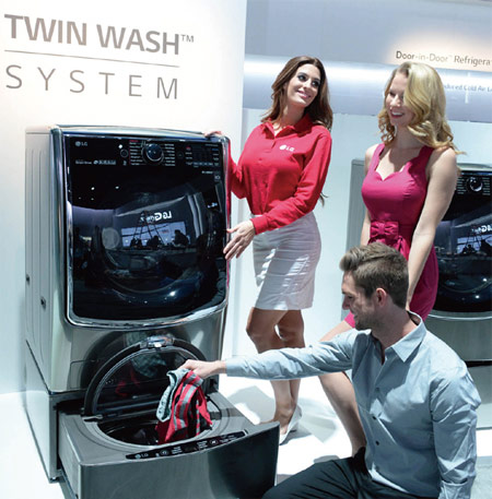 드럼세탁기 하단에 통돌이 세탁기를 결합한 트윈워시는 미국서 판매되는 세탁기 중 최고 몸값을 자랑한다. 건조기와 함께 구입하면 5000달러에 육박한다. LG전자는 트윈워시 호조세를 몰아 라인업을 다양화하고 출시국가를 18개국에서 올해 연말까지 40여개 국가로 확대할 예정이다.