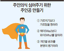 주인의식은 ‘주인이 돼라’고 종주먹을 대며 말만 해서는 되지 않는다. 진짜 주인으로 대우해주면 가지지 말라고 해도 용솟음치게 돼있다. 주인을 주인으로 존중하는 의식(意識)과 의식(儀式)의 씨줄날줄을 얽고 공식화해야 불이 붙는다.