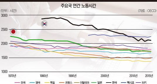 아베 총리는 젊은층의 손을 들었다. 그가 내세운 ‘1억 총활약 사회’를 달성하기 위해선 장시간 노동 관행을 고치는 편이 도움이 된다고 판단한 것이다. OECD(경제협력개발기구)에 따르면 일본의 지난해 연간 노동시간은 1719시간으로 독일(1371시간), 프랑스(1482시간)보다 긴 수준이다.