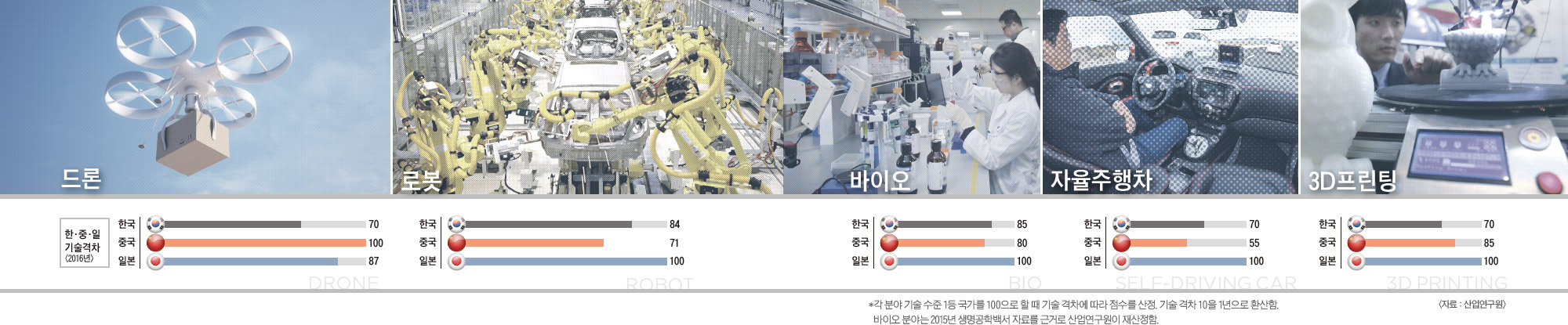 우리나라 13대 수출품목의 세계시장점유율은 감소한 반면 중국의 세계시장 점유율은 큰 폭으로 늘어났다. 중국 점유율은 2011년 15.2%에서 지난해 18.3%로 상승했다. 일본의 세계시장 점유율은 2011년 6.8%에서 지난해 5.2%로 줄었다. 세계시장에서 중국 기업의 약진으로 한국 주력산업의 입지가 점차 줄어들고 있다는 얘기다. 중국은 기술적 측면에서 이미 추격을 넘어 우리나라를 추월하고 있다. 산업연구원의 분석에 따르면, 중국은 가격경쟁력에서 한국보다 높고 일부 업종에서는 품질과 기술력에서 근접했다. 자동차·조선 등 기계분야에서는 중국의 품질과 기술이 75~85% 수준인 것으로 평가됐다. 특히 시스템반도체 분야에선 중국 기술이 우리보다 10%가량 ..