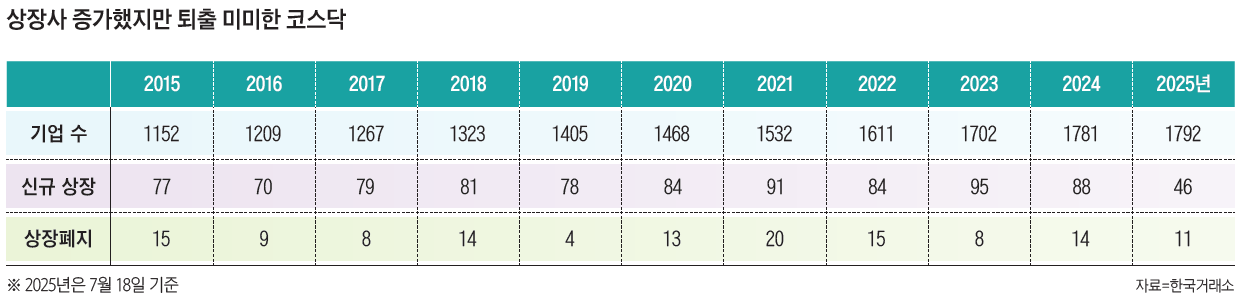 특히 홍콩의 성장기업시장(GEM), 일본의 자스닥(JASDAQ) 등 해외 유사 시장이 위축된 것과 비교할 때 코스닥의 성과는 주목할 만하다. 그러나 이러한 외형적 성장에도 불구하고, 코스닥은 자금 조달 기능에 비해 투자금의 회수와 재투자로 이어지는 선순환 생태계를 완성하는 데는 구조적 한계를 보이고 있다.