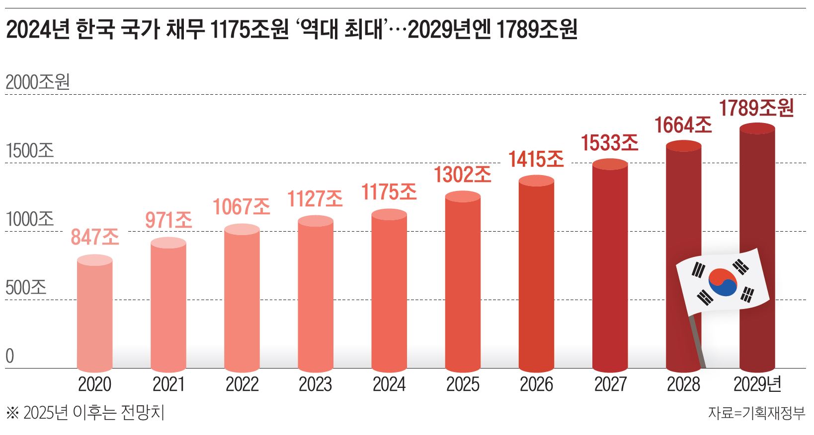 반면, 한국의 여건은 이와 다르다. 에너지와 식량의 높은 수입의존도 그리고 비기축통화국이라는 특성은 대외 변동성에 취약할 수밖에 없는 구조적 한계를 의미한다. 이러한 상황에서 재정 건전성 악화는 국가 신인도와 직결될 수 있는 민감한 사안이다. 국회예산정책처의 장기 재정 전망에 따르면, 별도의 개혁 조치가 없을 경우 2070년 한국의 GDP 대비 국가 채무 비율은 190%를 상회할 것으로 예측된다.