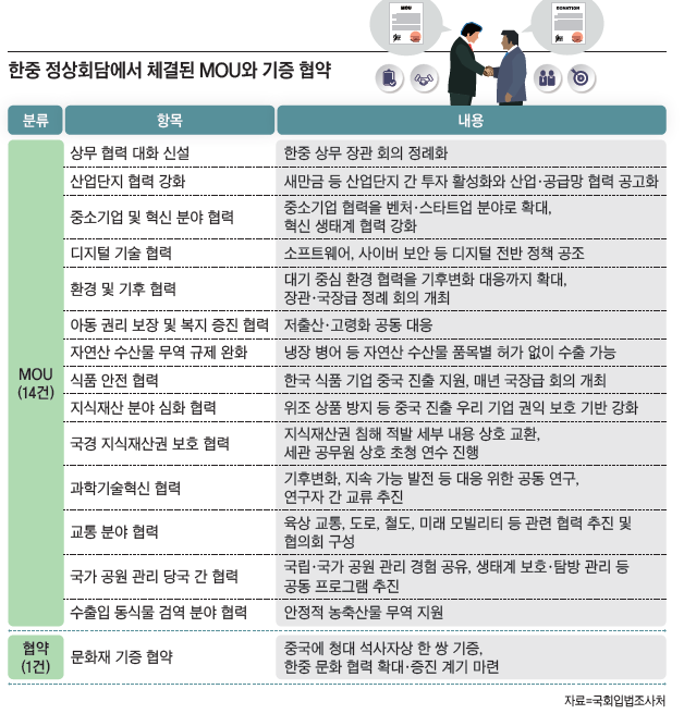 이러한 성과는 2025년 11월 경주 APEC(아시아·태평양 경제협력체) 정상회의를 계기로 한국에서 개최된 한중 정상회담 성과의 진전으로 평가해도 무방할 것이다. 당시 정상회담에서도 한중 통화 스와프 계약 연장과 자유무역협정(FTA) 서비스·투자 협상 진전을 추진하고, 지방 경제 활성화, 공급망 안정화에도 노력하기로 합의했다. 양국 국민 삶의 질 향상을 위한 문화·환경 분야 협력과 양국 간 인적 교류 활성화를 위한 상호 방문 편리화 조치 등이 논의됐고, 신흥 산업 협력은 고령화사회 대응이라는 양국의 공통된 문제 인식이 기반이 됐다는 측면에서 민생에 가까운 의제 중 하나였다고 할 수 있다.