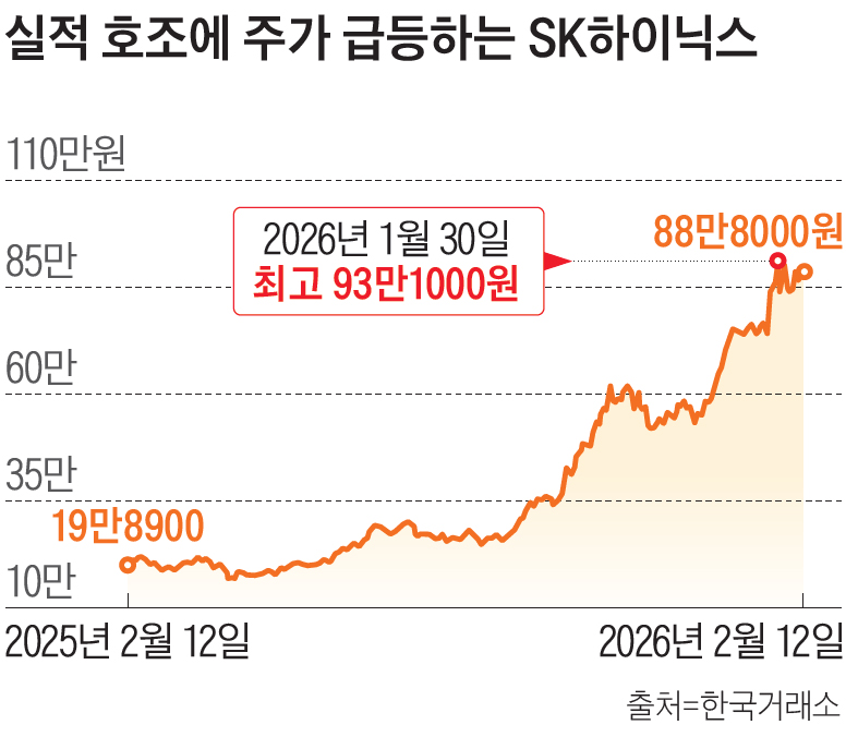 2월 5일 오후 7시쯤 경기도 이천시 부발읍 SK하이닉스 정문 인근 식당가. 사원증을 목에 건 SK하이닉스 직원 단체 손님으로 가게가 북적였다. 주점과 식당 예약판에는 ‘SK’라는 글자가 빼곡히 적혀 있었다. 평소보다 들뜬 표정의 직원 사이에서는 “성과급으로 무슨 차를 살지 고민”이라는 말이 오갔다. 계산대 앞에서는 “너무 많이 먹은 것 아니냐”는 물음에 한 직원이 “술값이 28만원밖에 안 나왔다”며 선뜻 신용카드를 내밀었다.