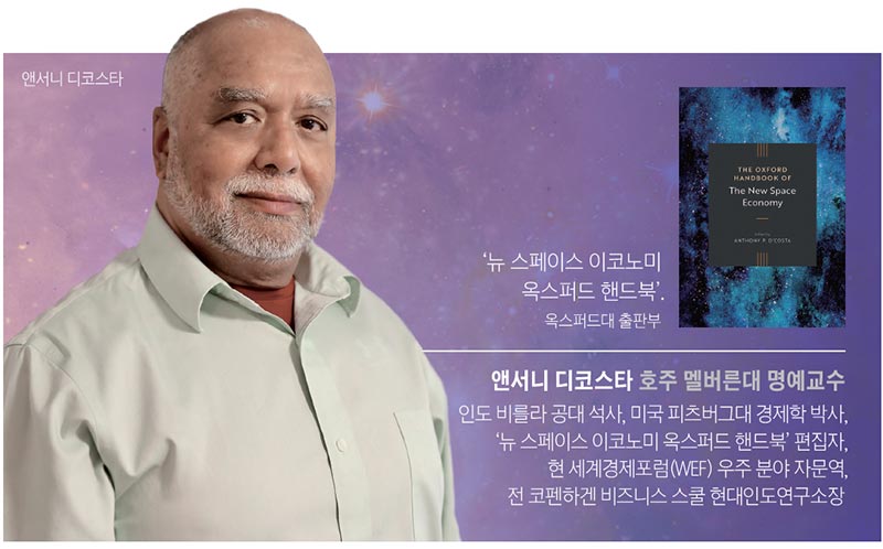 앤서니 디코스타 호주 멜버른대 명예교수는 국제 개발과 산업 경제학 분야의 세계적인 석학이다. 최근 그는 전 세계 86명의 경제학자, 우주 전문가와 함께 ‘뉴 스페이스 이코노미 옥스퍼드 핸드북’이라는 책을 냈다.