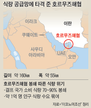 걸프만과 오만만을 잇는 좁은 호르무즈해협은 밀·옥수수·쌀·대두·설탕·사료 등 주요 식량 자원이 걸프 지역으로 유입되는 핵심 관문이다. 글로벌 곡물 무역의 상당 부분이 이 수로를 거쳐 이동하며, 특히 바레인·쿠웨이트·카타르·아랍에미리트·사우디아라비아·이라크 등 걸프 국가가 소비하는 식량의 약 70~90%가 수입에 의존하고, 그중 대부분이 호르무즈해협을 통과한다는 점은 이 지역의 구조적 취약성을 잘 보여준다.
